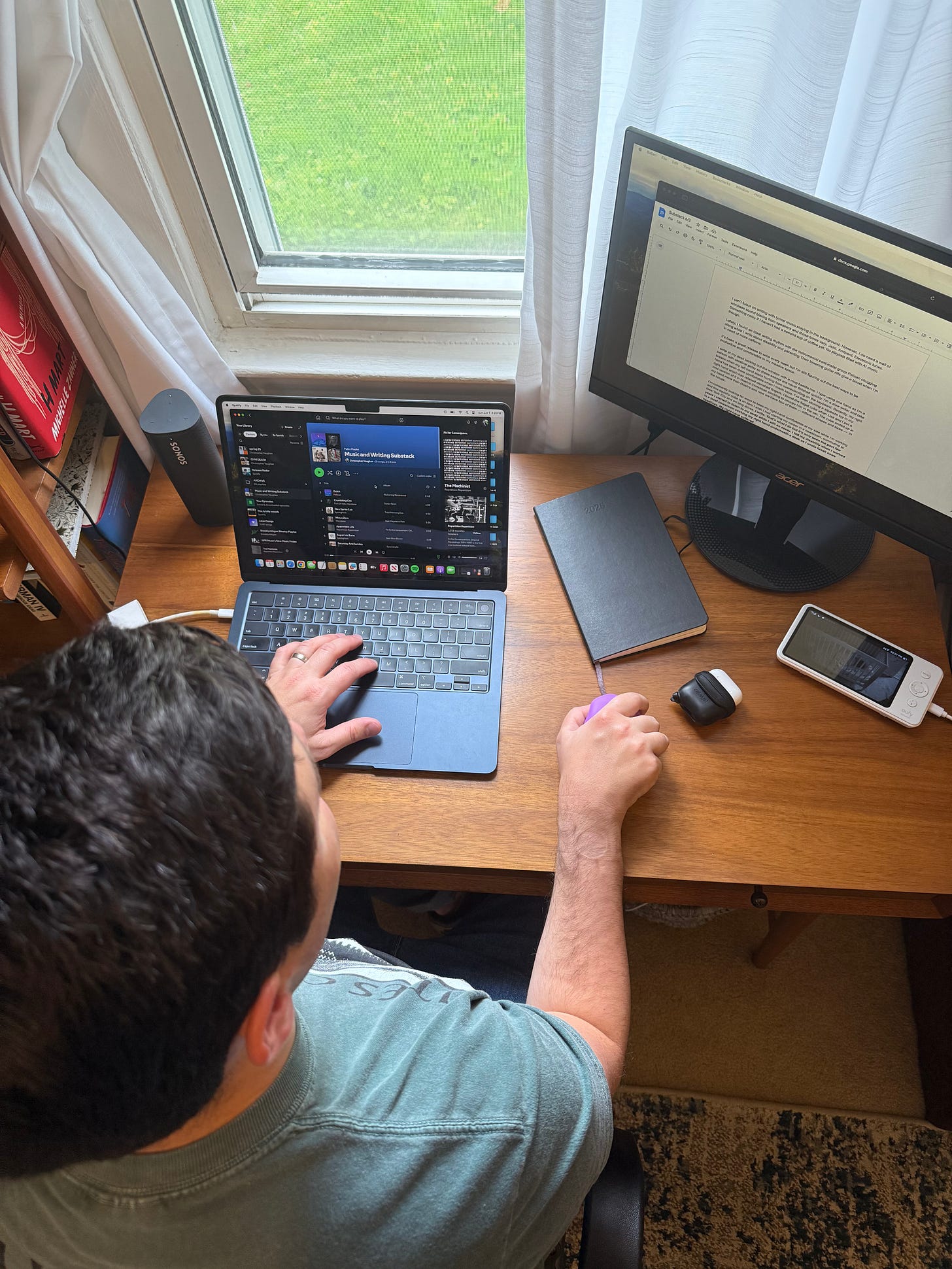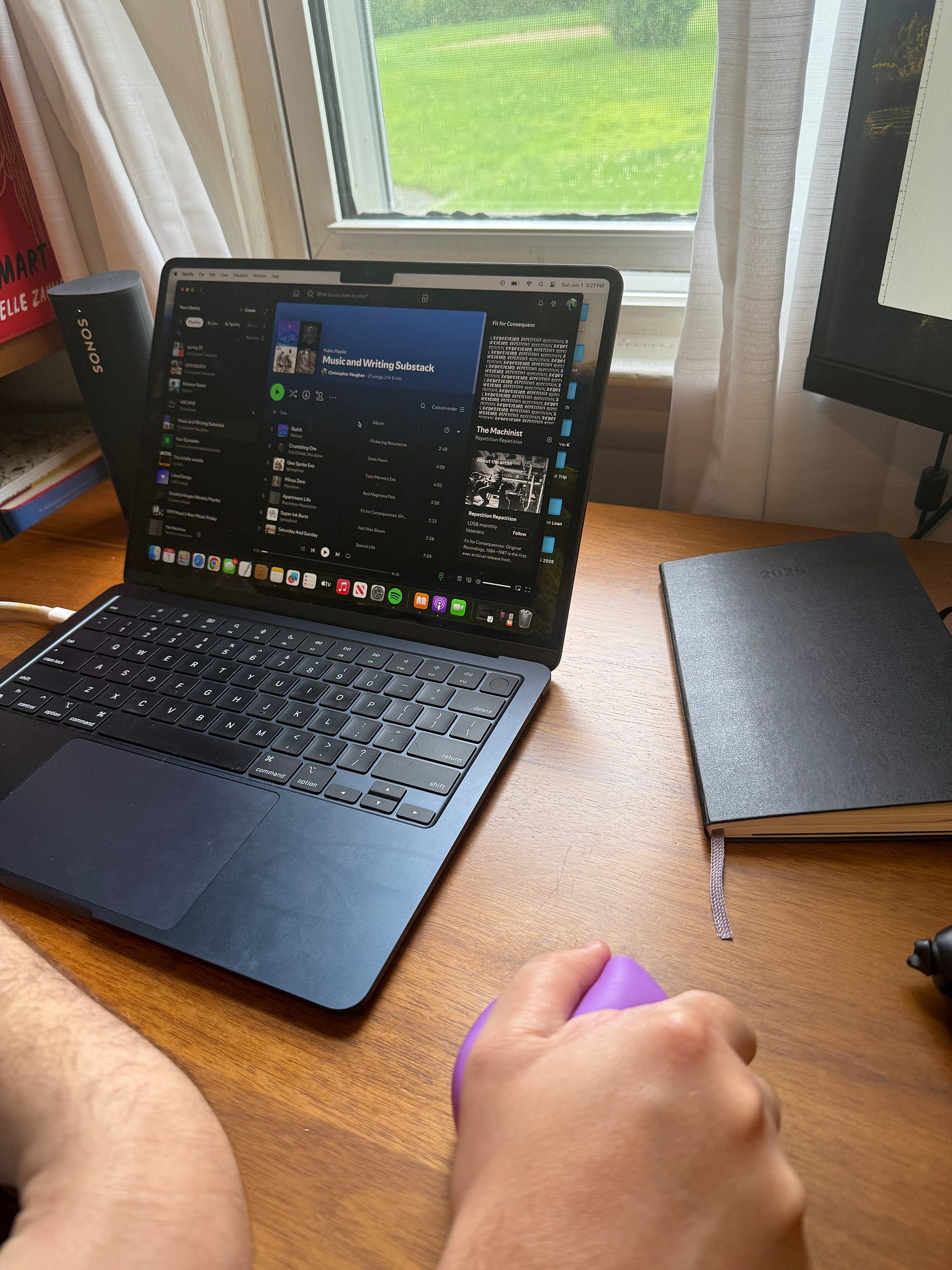 Throughout the week, I’m also updating my writing playlist. I’ve never seen value in those pre-made playlists filled with AI music. I’ll add new and old songs to the rotation. Honestly, that’s often how I unwind. I’ll update the writing playlist and one called Gym Death that I reconfigure multiple times a week. I created that playlist back when I actually went to my local YMCA gym pre-pandemic that’s sadly now closed. Instead, I ride a workout bike before Lisa and I get Noah ready for the day.